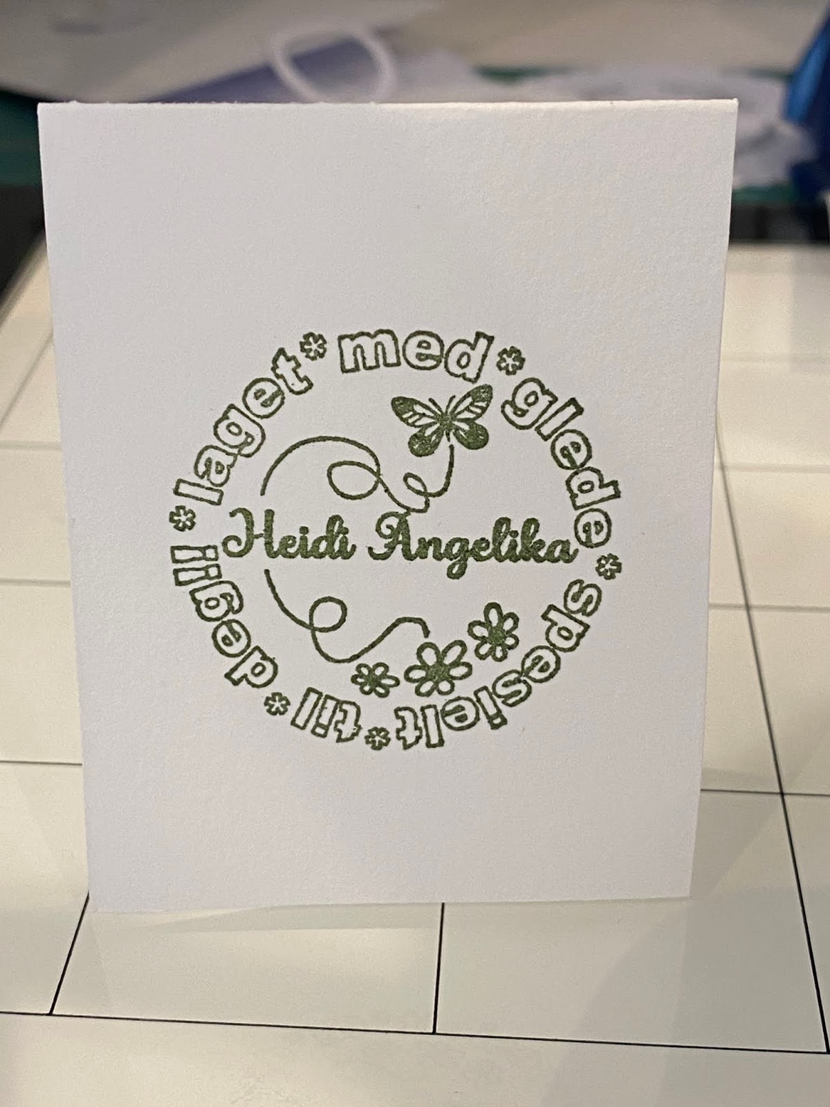 I followed the measurements and descriptions on how to make a regular one of these, but as I had decided I wanted to try making it with a heart as a swing element, I had to do a couple of adjustments to the tabs that make the card swing. Then I stupidly enough waited until I had glued everything on before trying to cut a piece to put around the heart, this to try and give the front of the card a bit more stability. I now know that I needed to do that before gluing everything together. I diet a piece that I thought I had measured right, but when I tried to glue it on it wasn't really a good fit. I then started to try to enlarging the heart part of it, but ended up making it worse than it initially had been. In the end I decided to cut the piece in half and go with just half a heart on the front card base. I thought it looked ok, but realized that I had a glue mess left where i had cut the striped paper. How was I going to cover that up? I tried with beads, but didn't like how it looked and decided to check if I had any embossing powder that was close in color to the Lawn Fawn Rainforest Card Stock (lawnfawn.com) I had used, and luckily I did. SO I ended up heat embossing the part of the front which didn't have striped paper on it. It came out ok enough, I think. By the way, the patterned paper I have used is Maja Design´s (majadesign.nu) Denim and Friends - Heartbreaker. I love, love, love Maja Design´s patterned paper series!!